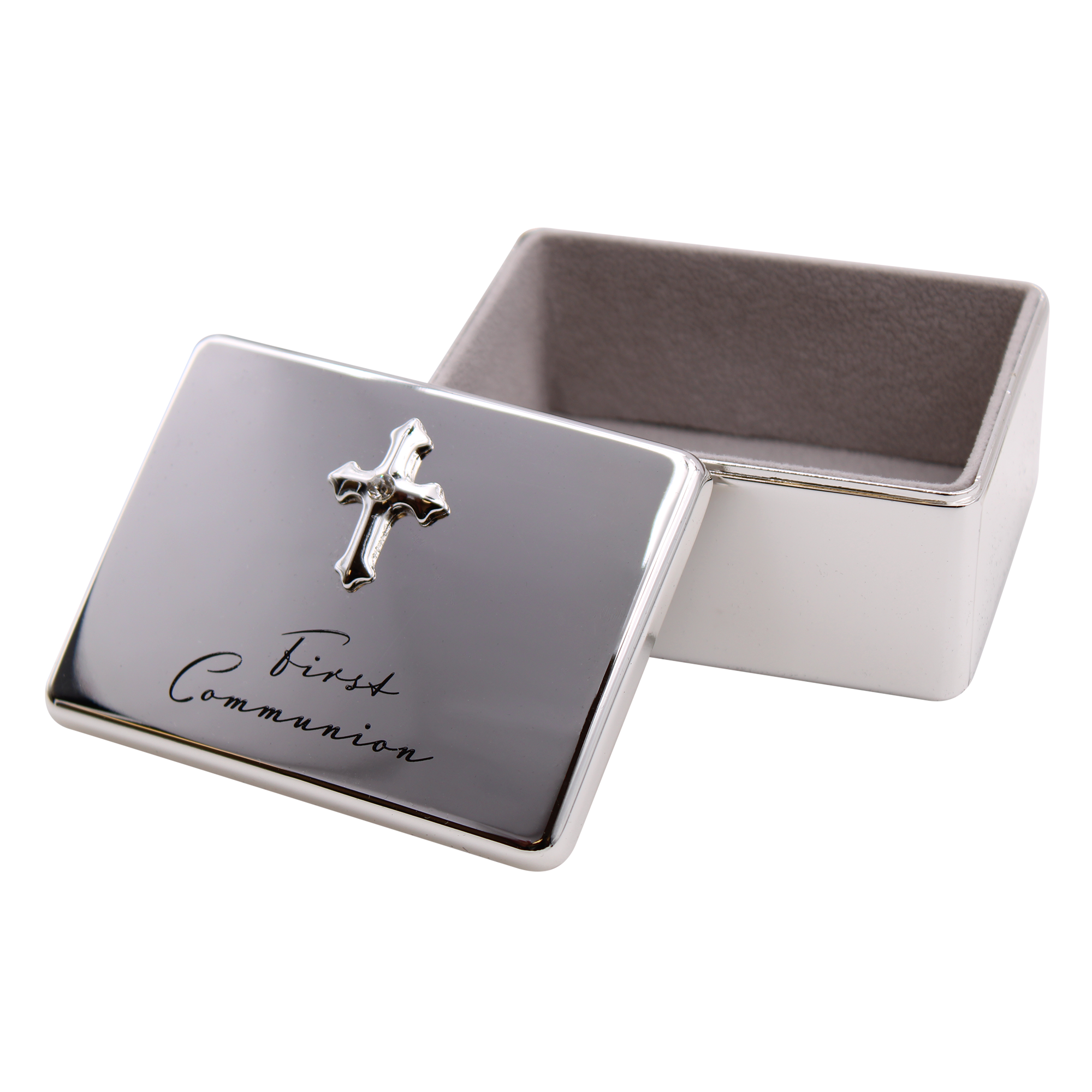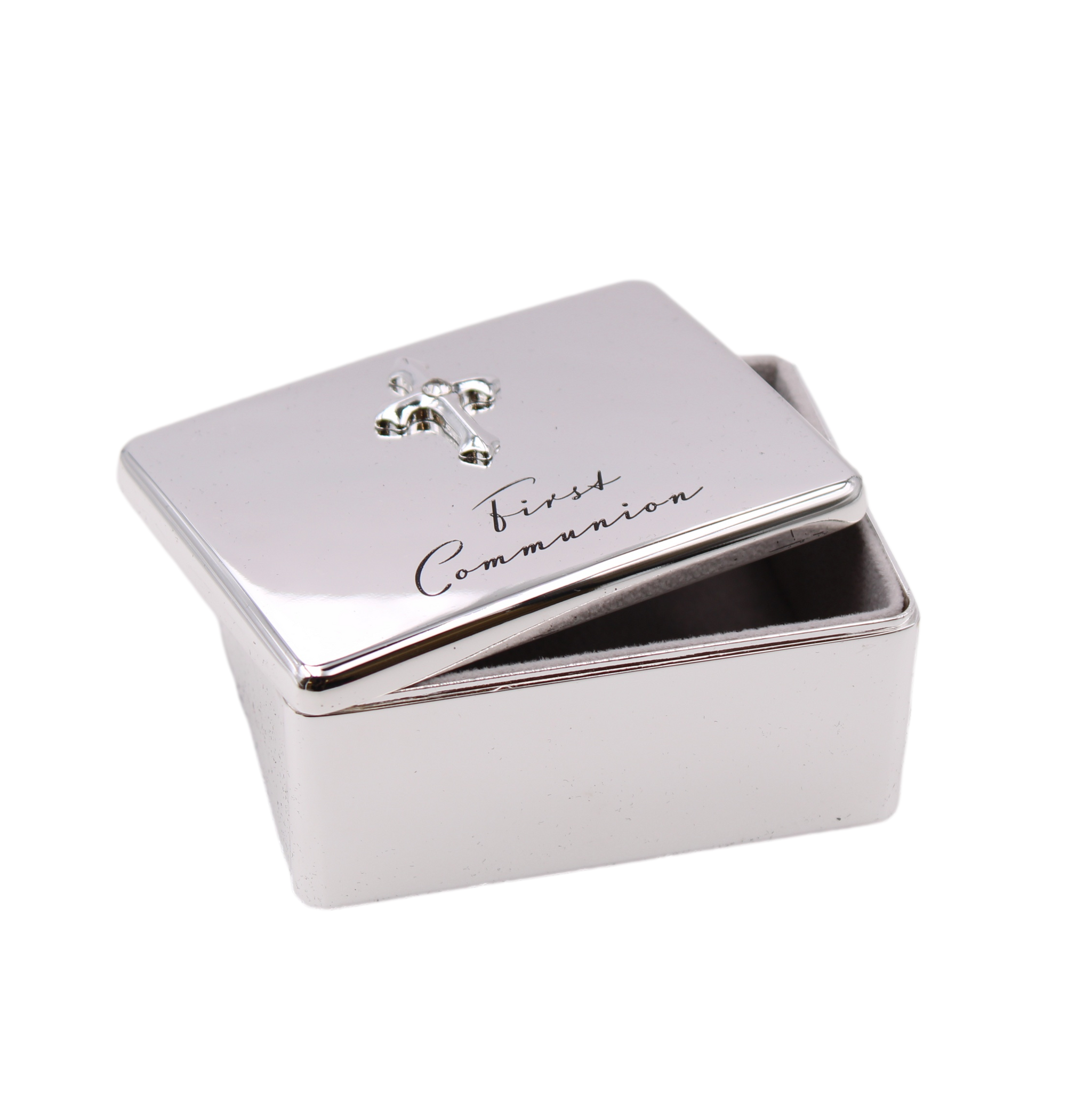 First Holy Communion Mirrored Silver Tone Keepsake Box with Cross