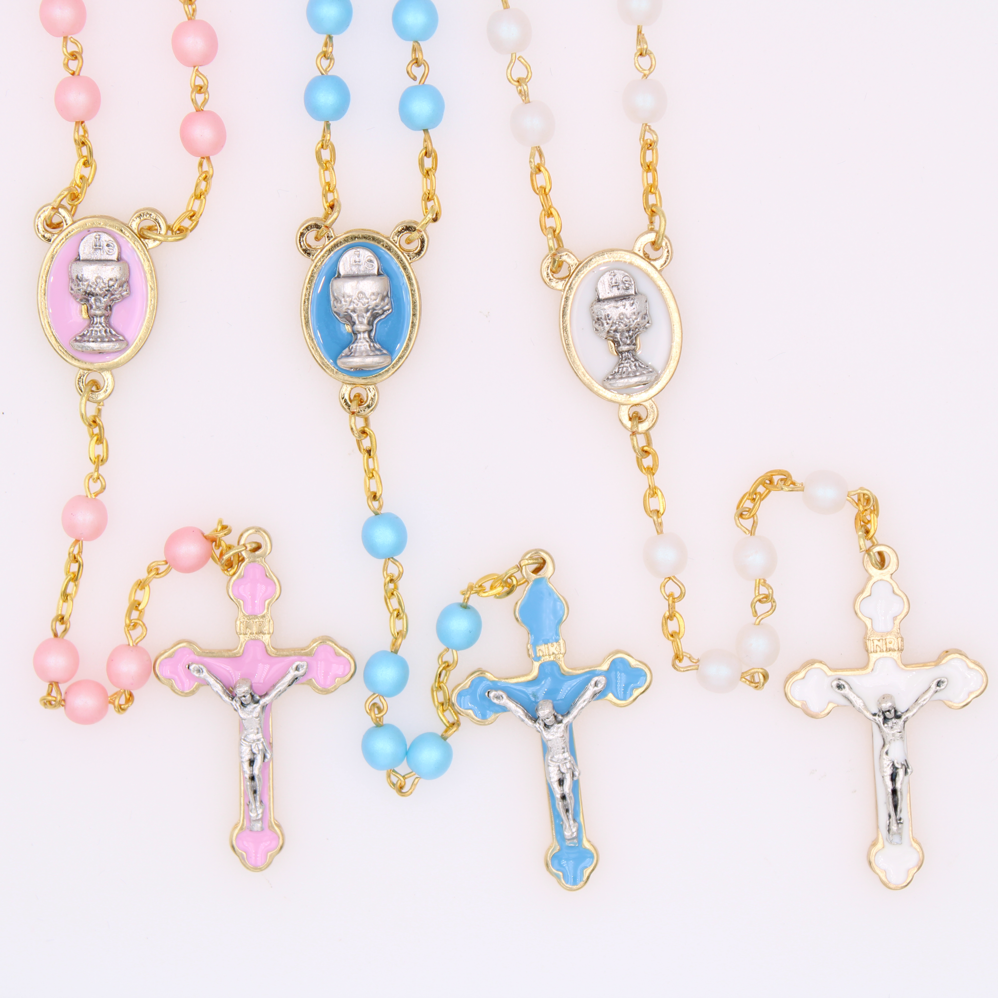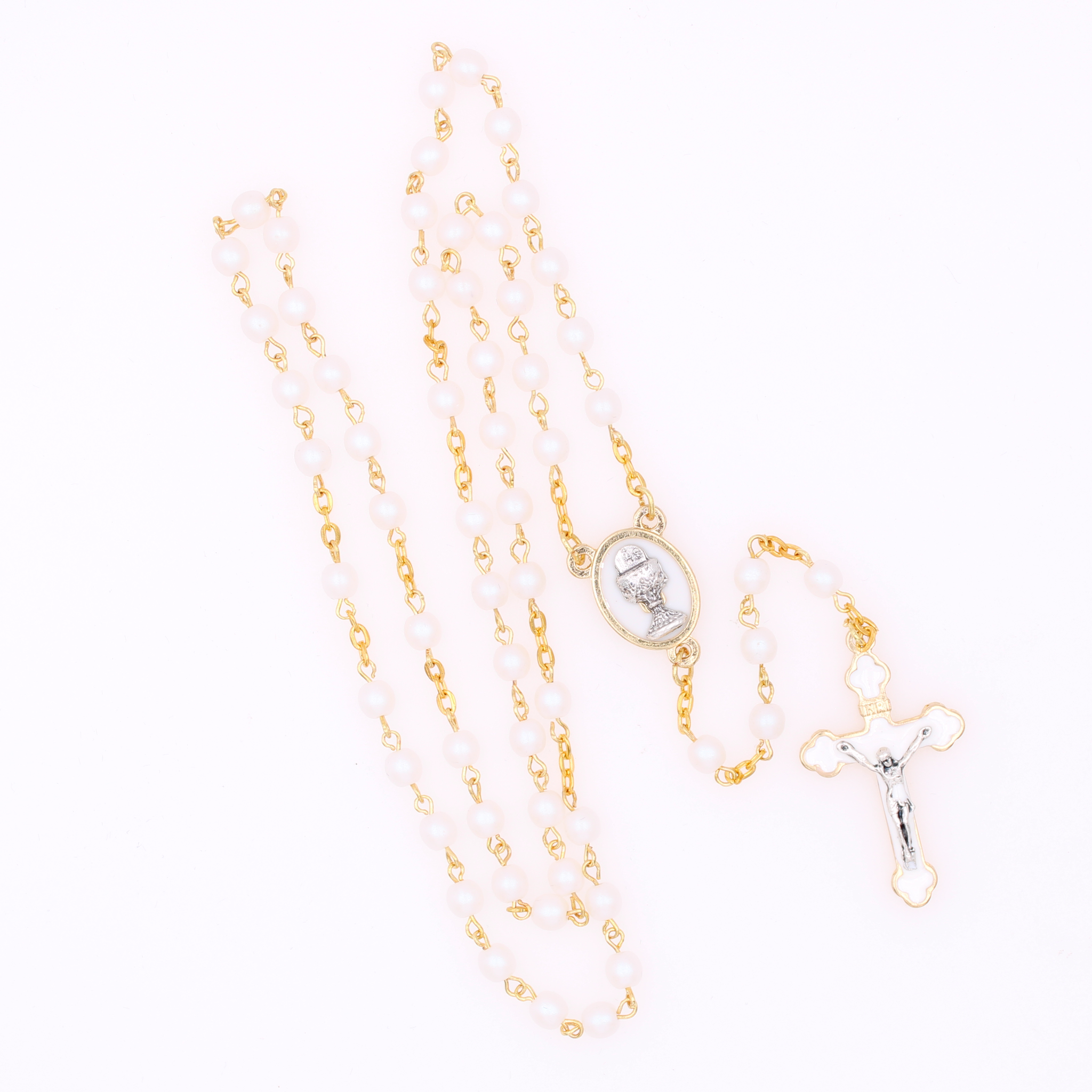 6mm Communion Rosary in Gold Tone with Matching Crucifix